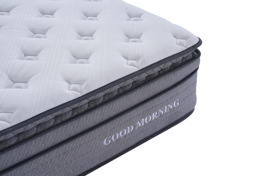 The Morrison Good Morning + Mattress is built with precision using top-tier materials for lasting performance. The top layer boasts luxurious quilting with high-quality knitted fabric, lightweight Dacron foam for cushioning, 3.5cm convoluted foam to enhance airflow and conform to body contours, and 1.5cm 20D normal foam for subtle support. Beneath this, a 4cm 22D medium foam layer provides personalised comfort, while the core features a robust 26cm pocket spring system with 2.0mm wire coils for independent coil action and firmer edge support to prevent roll-off from the mattress.
